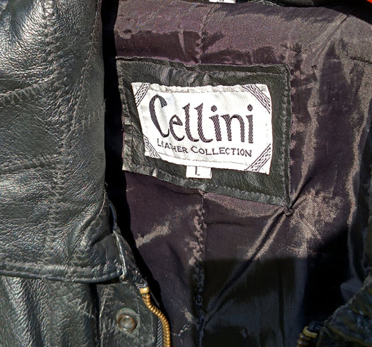 80s Cellini Black Leather| Vintage patchwork like Biker Leather coat| Unisex Hipster Winter jacket