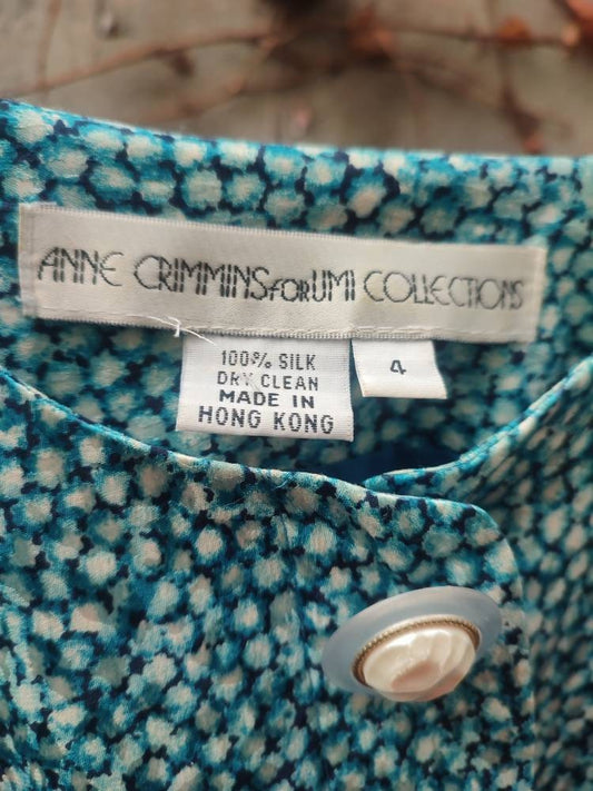 Anne Crimmins For Umi Collections| Vintage Silk Evening Jacket in blue and white with Scalloped hemline