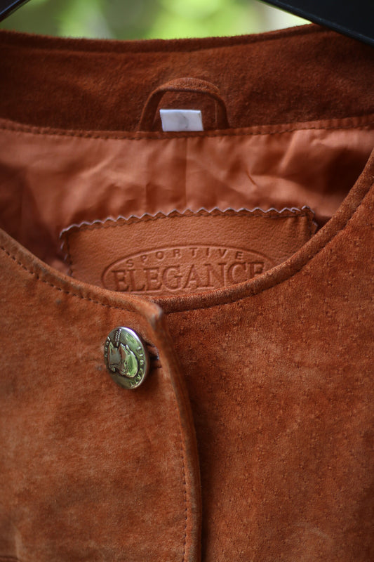 Vintage Suede Jacket| 80s band collar brown blazer with statement buttons| Minimalist cropped design