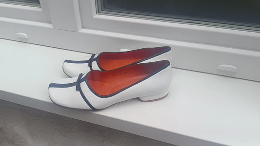 Audley Vintage Leather Shoes EU39.5| White Black Two Tone Striped Minimalist Flats