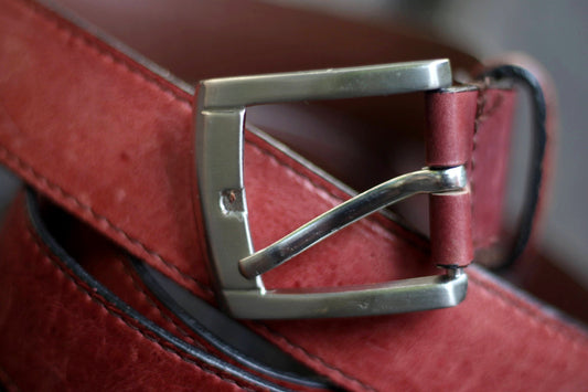 Vintage Red Leather Belt| Women's 70s Minimalist Belt| Classic Purist Leather Accessory