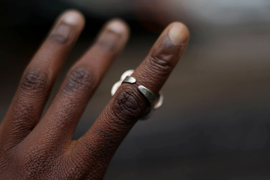 70s Blue Floral Ring| Women's Vintage Flower Power Ring | Silver colored Vintage Floral Motif Ring