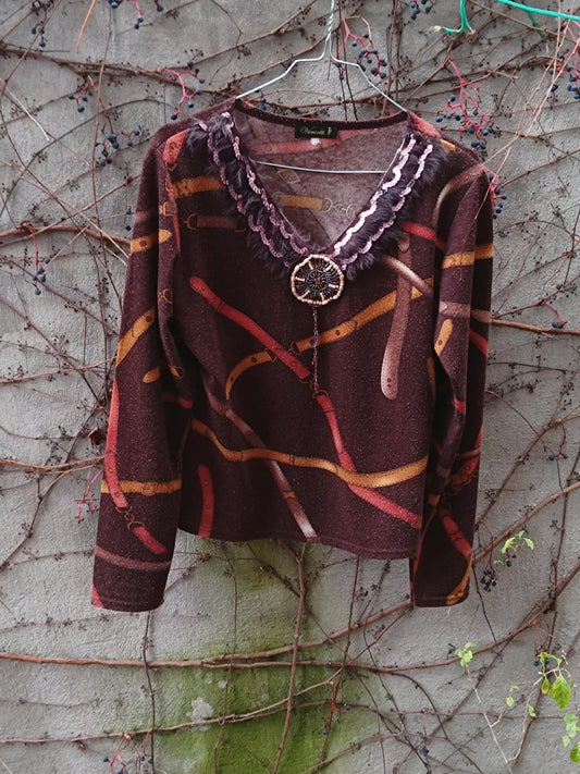 Vintage Vercotti Swirly Print Blouse| Size Small