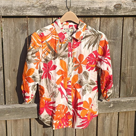 Vintage Hawaiian Print Button-Down Shirt S-M