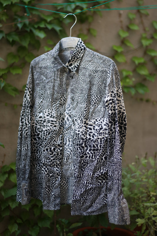 90s Animal Print Shirt | Vintage Patterned Blouse | Artistic Button-Down | Statement Blouse | Cotton Shirt