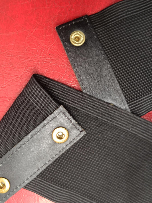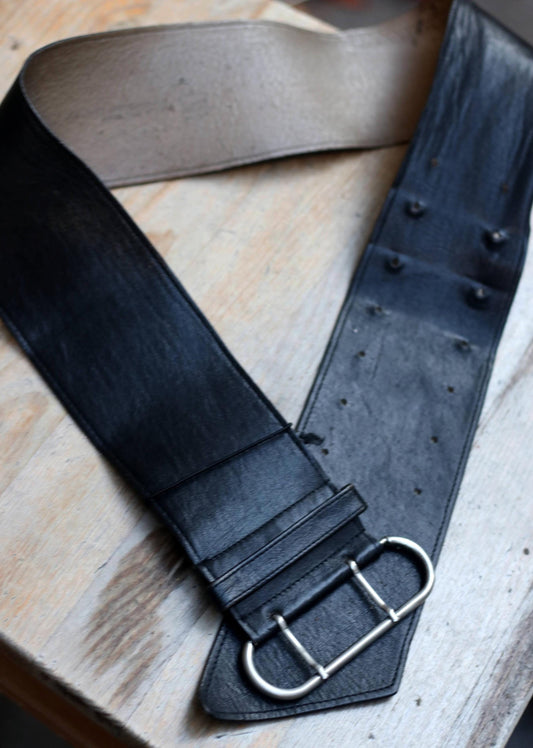 Vintage Leather Belt | 90s Black Wide Waist Belt | Women's Antique Silver Buckled Belt | Minimalist Structural Fashion Accessory
