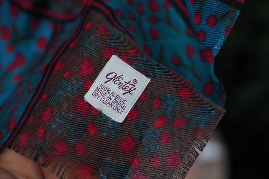 The Heritage Bloom: Vintage Glentex Rose Scarf in Teal & Red