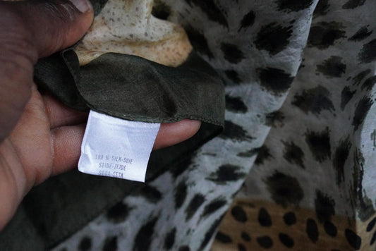 Silk Animal Print Scarf Vintage Green Leopard Pattern Square Neck Head Wrap 100% Silk