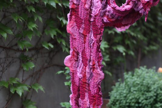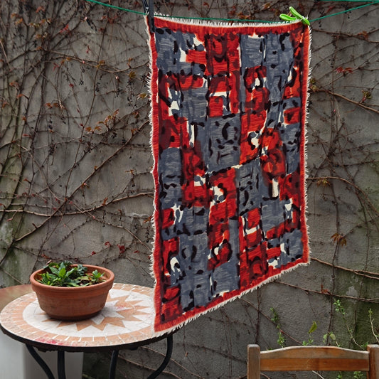 80s Artistic Scarf | Vintage Crimson & Charcoal Scarf | Painterly Abstract Women's Statement Accessory