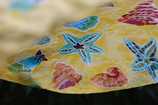 Vintage Silk Seashell Scarf | Yellow Ocean Print Foulard | Coastal Resort Wear | Lightweight Summer Beach Accessory