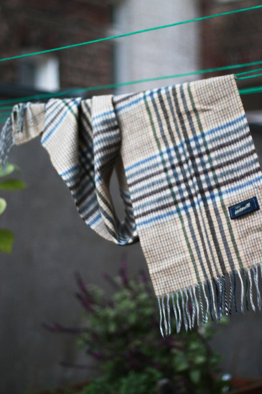 90s Cashmere Scarf| Vintage green and black plaid winter accessory | Minimalist checkered tartan winter wrap