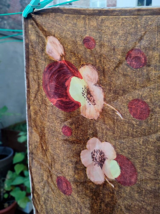 Vintage Floral Print Scarf in Brown, Red and Pink