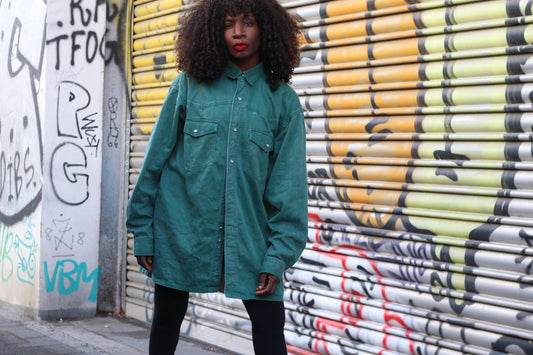 Vintage Arizona Jeans Green Denim Shirt 90s Oversized Cotton Button Up Top