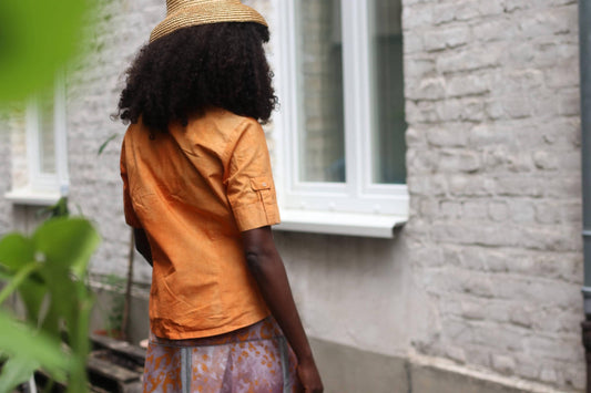Vintage Brown Orange Shirt – 90s Short Sleeve Button Down Collared Top – Women’s Lightweight Summer Blouse Retro Minimalist Style