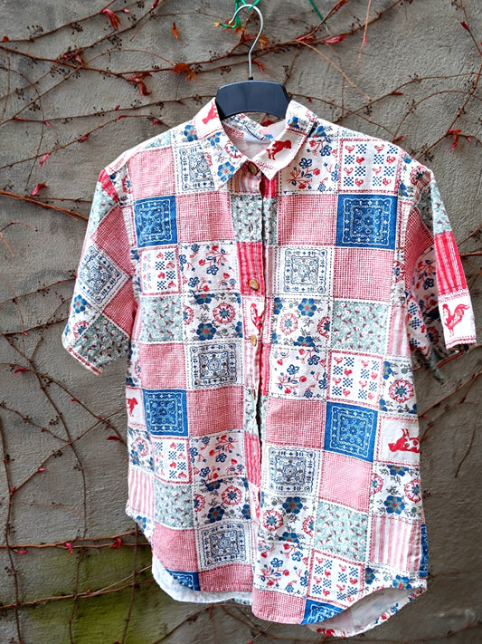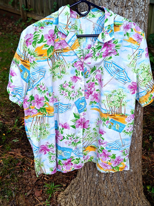Vintage Hawaiian Print Button-Down Shirt S-M