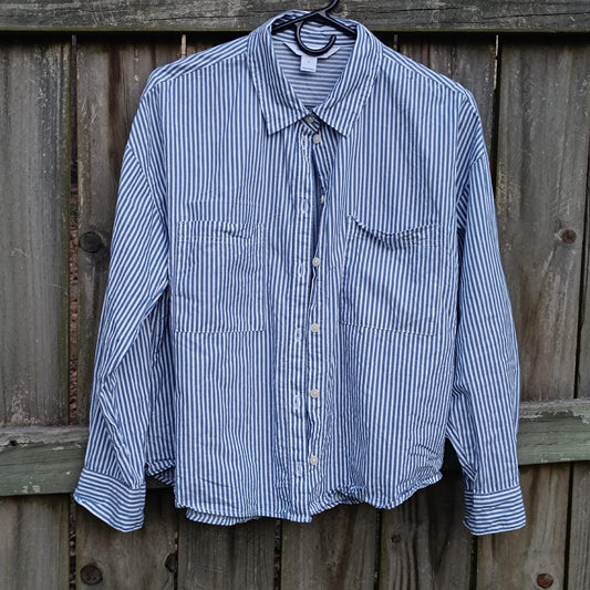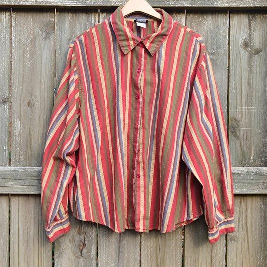 Vintage 90s Striped Button-Up Shirt | S-M