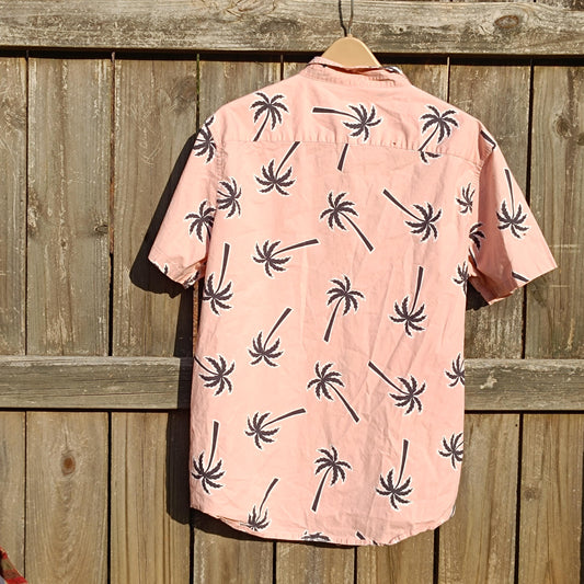 Vintage Pink Palm Tree Shirt | 90s No Boundaries Relaxed Fit Tropical Button-Up | Lightweight Summer Vacation Shirt