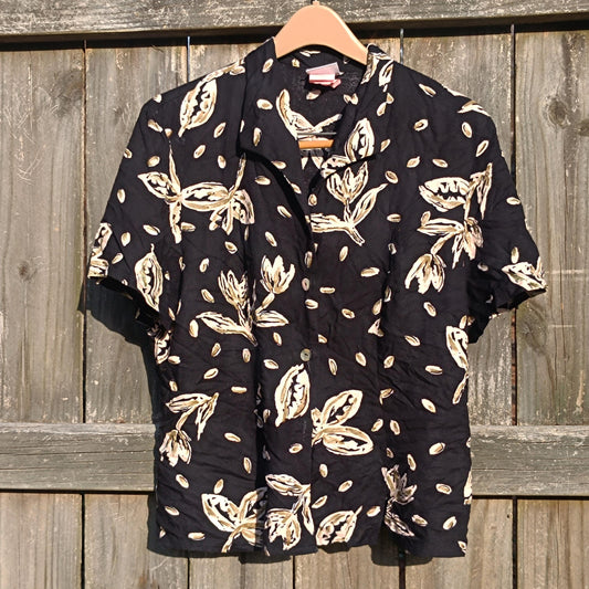 Vintage Bobbie Brooks Floral Shirt | 90s Black Summer Blouse | Festival Chic Relaxed Fit Short-Sleeve Button-Up