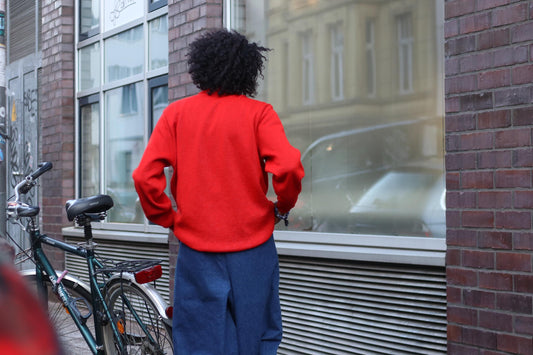 90s Vintage Red Crewneck Sweatshirt| Vintage Oversized Women's Winter Crewneck| Classic Wool Long sleeved Jumper
