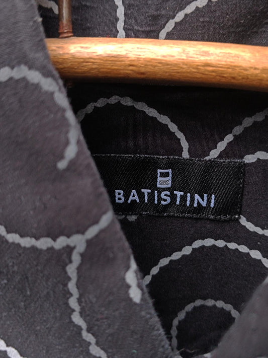 Vintage Abstract Print Button-Up Blouse in Black and Beige, Long Sleeve Ethnic Tribal Boho Top, Retro 80s Artsy Graphic Shirt for Women