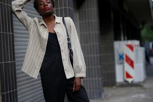 80s Frankwalder Striped Blouse in Grey| Women's Office Chic Buttoned down Shirt| Vintage Retro Striped Blouse | S-M