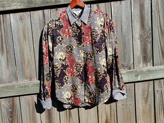Vintage SLB By Sunny Leigh Blouse | y2k Baroque Inspired Long Sleeved Shirt | Maximalist Shirt