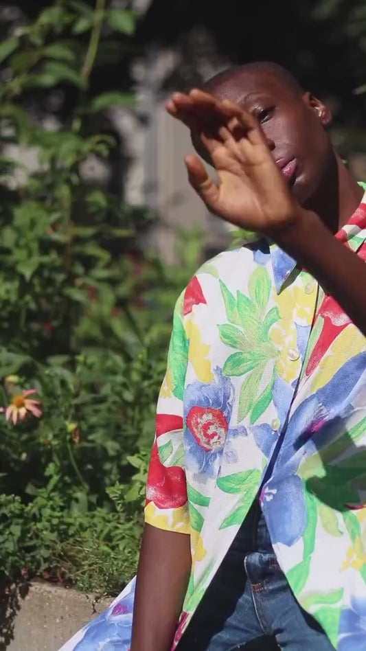 90s Floral Print Blouse| Vintage Flou Short-Sleeved Summer Shirt | Women's Maximalist Shirt