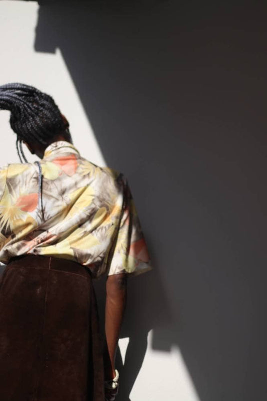 Vintage Finn Karelia Floral Print Blouse| 80s bold short sleeved shirt