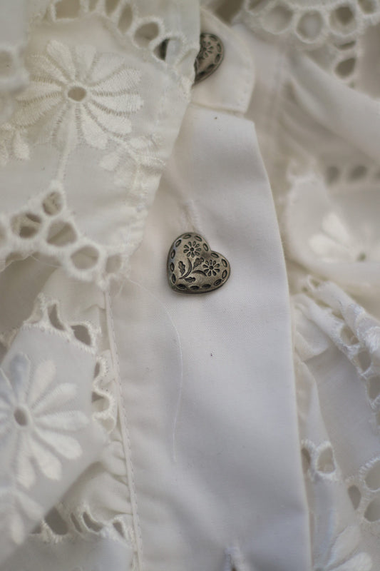 80s cottage core cotton blouse| Vintage feminine white shirt with statement heart collar and oversized collar