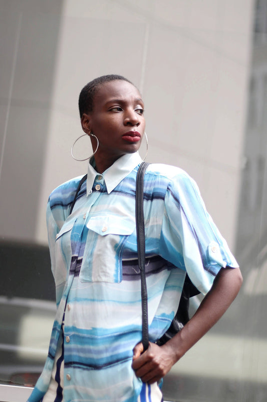 90s avantgarde blouse| Vintage ombre blue short sleeved shirt