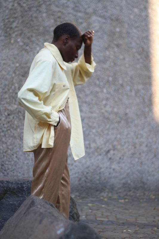90s Hämmerle Shirt in light yellow| Vintage minimalist classic buttoned down blouse | Workwear capsule wardrobe blouse