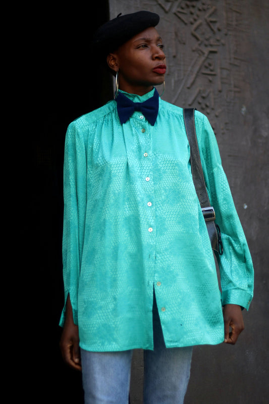 80s Green long sleeved Blouse| Vintage floral print maximalist buttoned down shirt