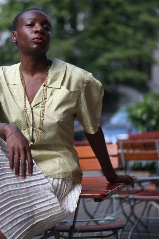 Bernd Berger Silk Polka dotted Blouse | Vintage minimalist cream Short sleeved classic silk shirt