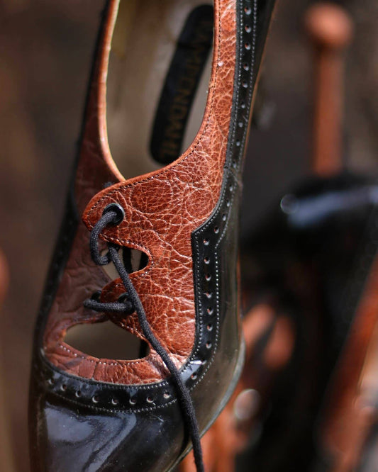 80s Leather Pumps| Made in Germany Brown and Black Vintage ladylike Heels| Shoes Size 38 EU