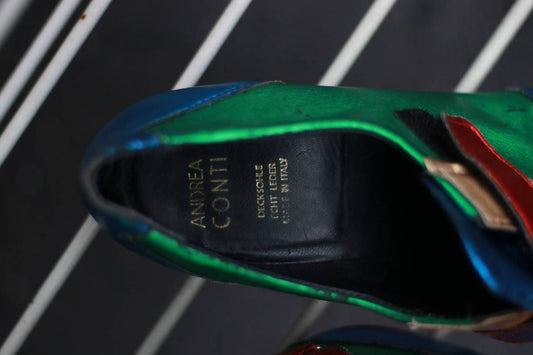 Vintage Andrea Conti Booties| 80s bold leather ankle boots| Blue, Green and Yellow pointed toe shoes