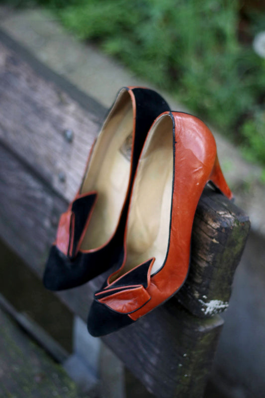 80s Leather Pumps| Made in Germany Brown and Black Vintage ladylike Heels| Shoes Size 38 EU