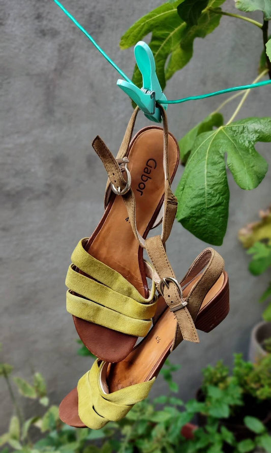 90s Gabor Suede Sandals| Vintage Summer Slingbacks in Yellow| Minimalist Mustard Shoes