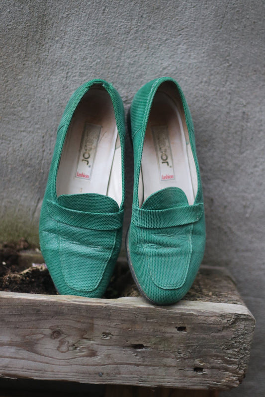 90s Gabor Green Brogues | Vintage Green Shimmery Shoes