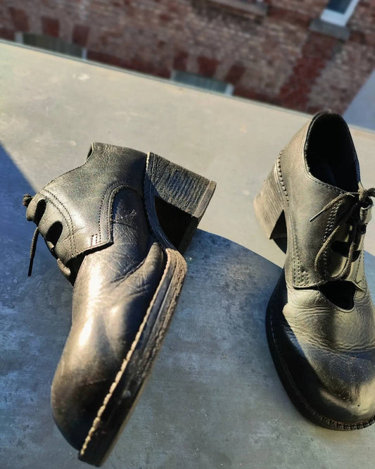 90s Leather Mary Janes| Vintage black platform heeled shoes| Grunge inspired black shoe boots