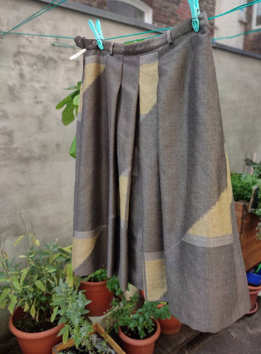 70s Grey Slendor Skirt| Made in West Germany Vintage Wool Skirt with Geometric Print| Maximalist retro winter skirt