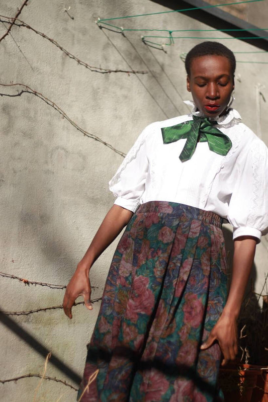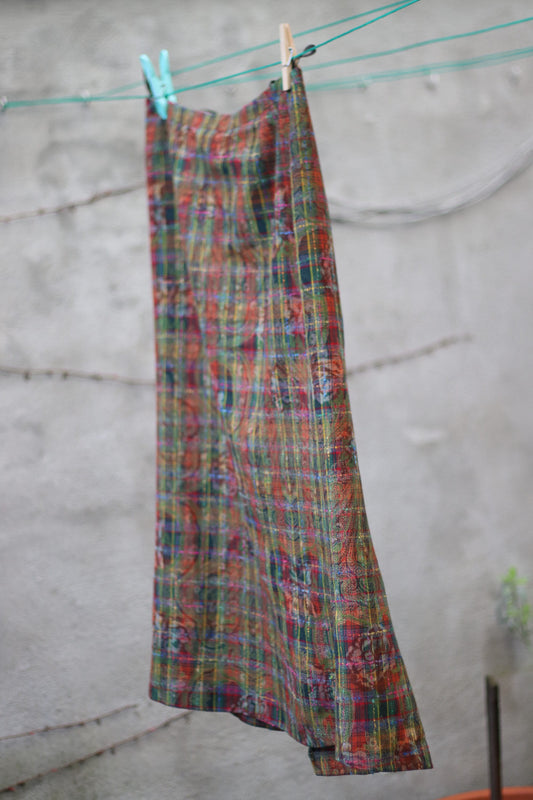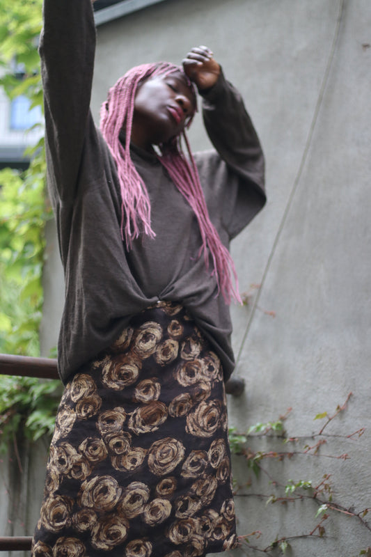 Vintage Brown Skirt with Floral Print | Maximalist design with abstract art print