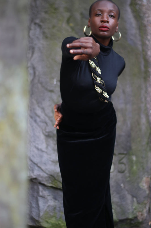 90s velvet optic black skirt| Vintage opulent maxi skirt| Minimalist evening skirt