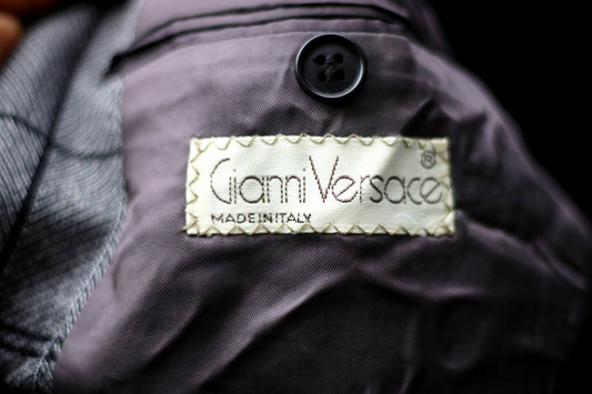 Ganni Versace Checkered Blazer| Vintage Plaid Grey Designer Blazer | Geometric Women's Woolen Suit Jacket