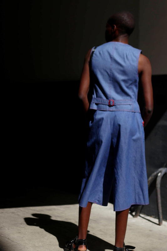 70s Blue Two Piece| Handmade Vest and Cullotes Set| Blue Minimalist Pant Suit