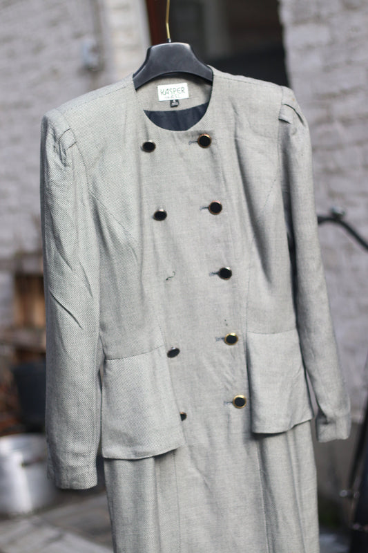 Vintage Kasper ASL Monochrome dress with tiered details. Office chic. Suit up