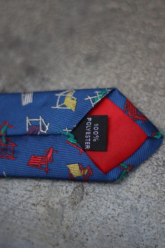 Vintage Blue tie with chair motif 90s quirky menswear suit neck tie
