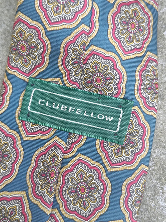 90s Clubfellow Silk Tie | Vintage Floral Print necktie | Men's Tie| Genderless unisex suit accessory