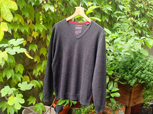 Vintage 90s Esprit Sweater | Women's Grey Merino Wool V neck