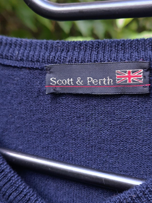 90s Scott & Perth Merino Wool Sweater| Vintage Blue Winter Minimalist Knit| Women's Long-sleeved Sweater