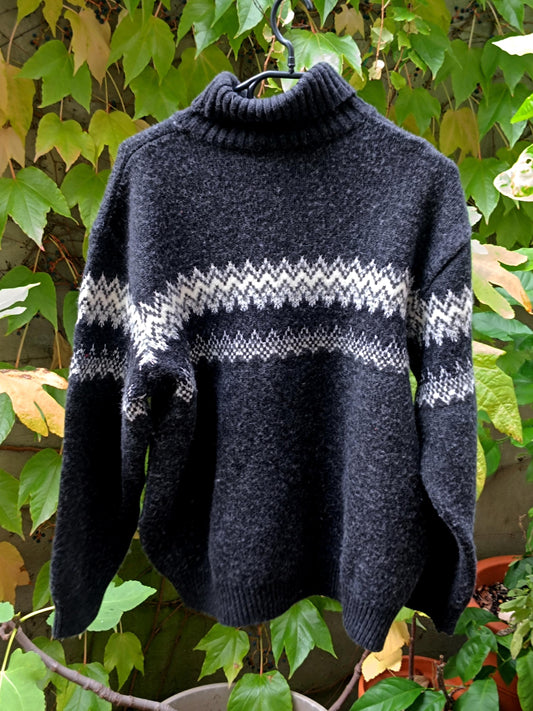 90s Selburose-like Sweater| Vintage Zigzag McClean Jumper in Grey and White | Women's Cozy Thick Pullover
